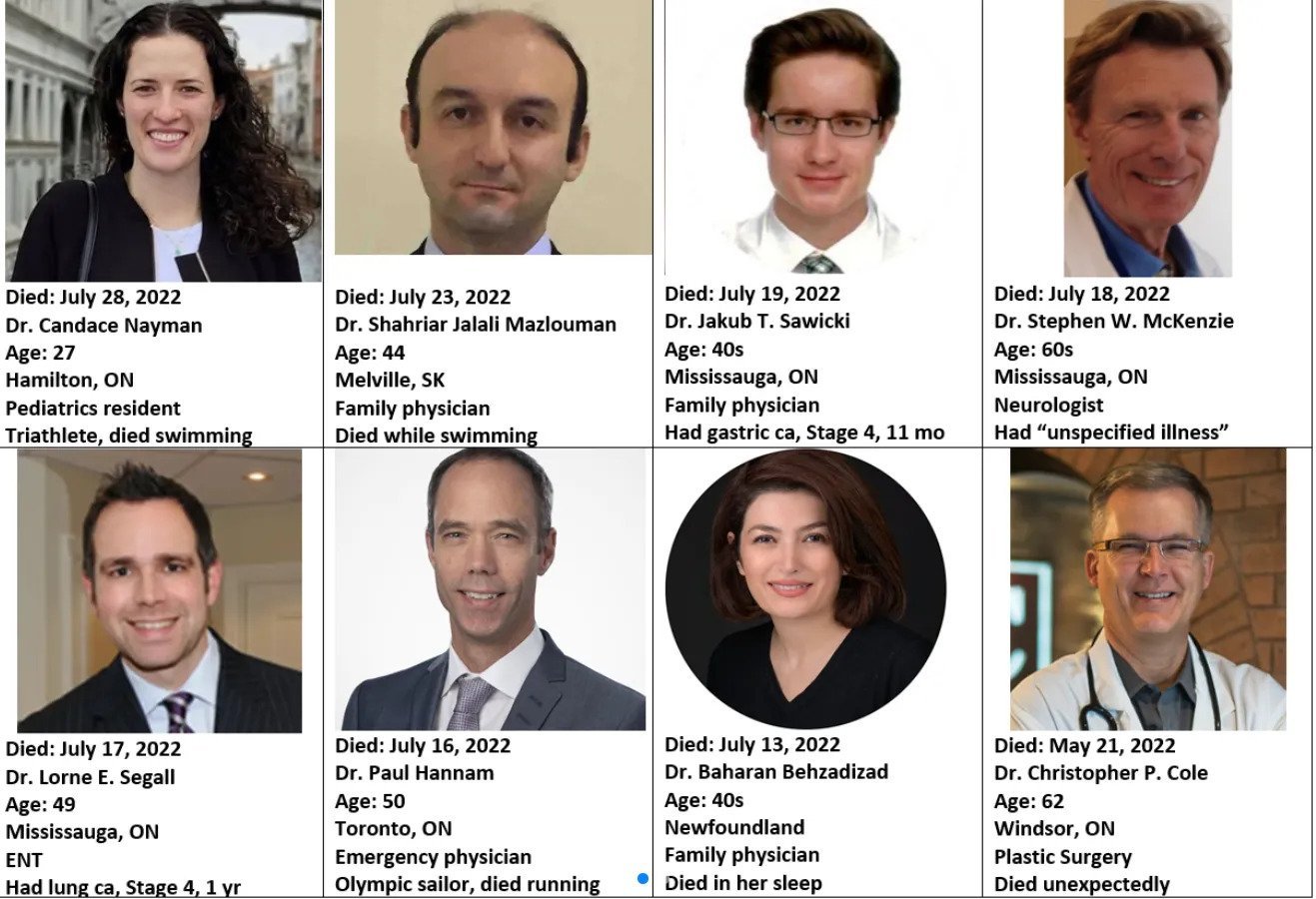 Τις τελευταίες δύο εβδομάδες, ο Καναδάς ενημερώθηκε για επτά θανάτους μεταξύ ιατρών, ο πιο πρόσφατος από τους οποίους ήταν η Δρ. Candace Nayman, όπως αναφέρει το The Gateway Pundit.