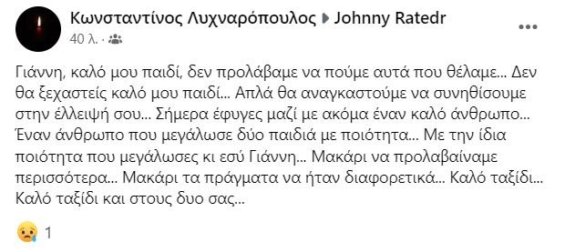 Συγκίνηση προκαλούν τα αποχαιρετιστήρια μηνύματα των φίλων και συγγενών του: