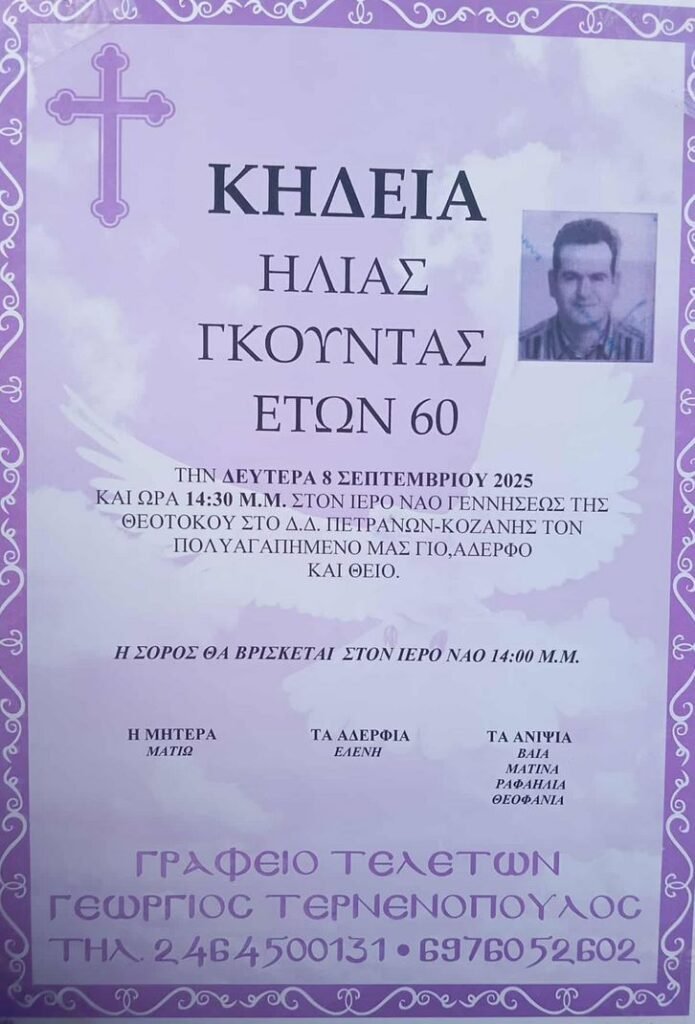Κοζάνη – Έφυγε από τη ζωή, σε ηλικία 60 ετών, ο Ηλίας Γκούντας