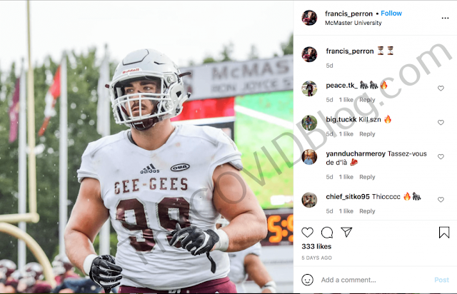 Ο κ. Francis Perron ήταν αμυντικός τεχνικός 6,1, 240 λιβρών για το Ottawa Gee-Gees. Όλα τα φθινοπωρινά αθλήματα ακυρώθηκαν το 2020 λόγω «ανησυχιών για την ασφάλεια με τον κορωνοϊο». Το Gee Gee’s συνέχισε τα προπονητικά προγράμματα της ομάδας ποδοσφαίρου πέρυσι για να διατηρήσει τους αθλητές σε φόρμα. Αλλά ακόμη και αυτό ακυρώθηκε τον Οκτώβριο του 2020 αφού πέντε παίκτες βρέθηκαν θετικοί στον COVID-19.