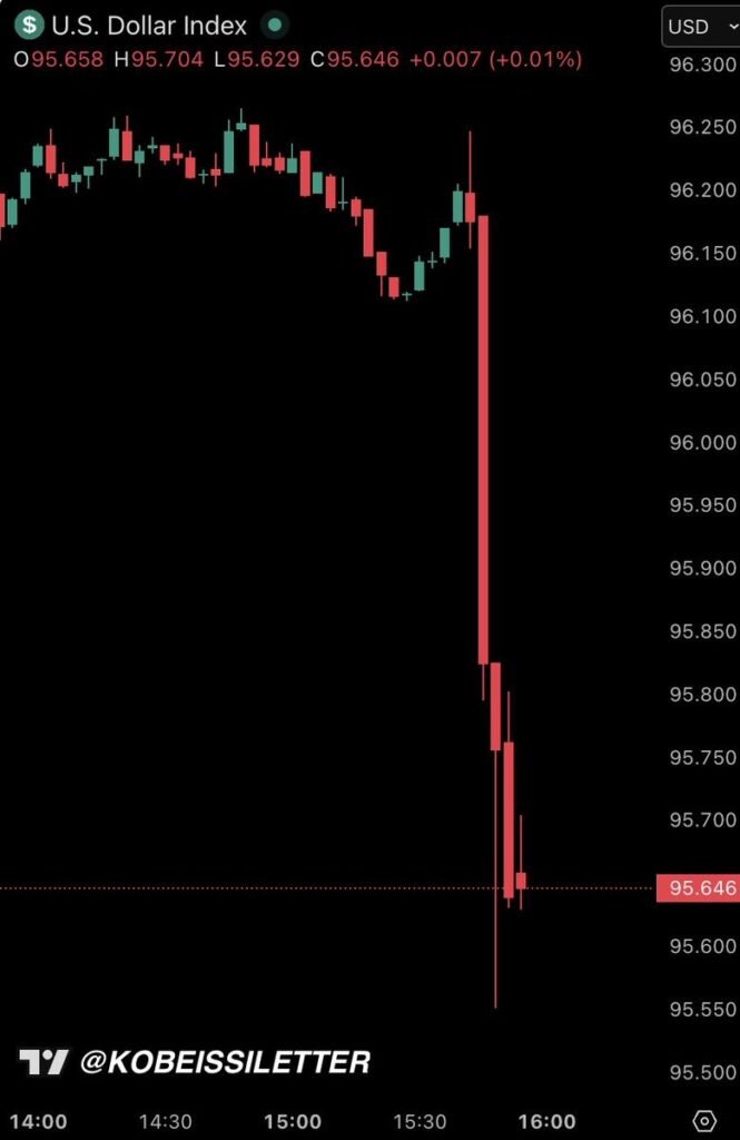 Αυτό προκάλεσε αμέσως πτώση του δολαρίου ΗΠΑ κατά -1%, στο χαμηλότερο επίπεδό του από τον Φεβρουάριο του 2022.