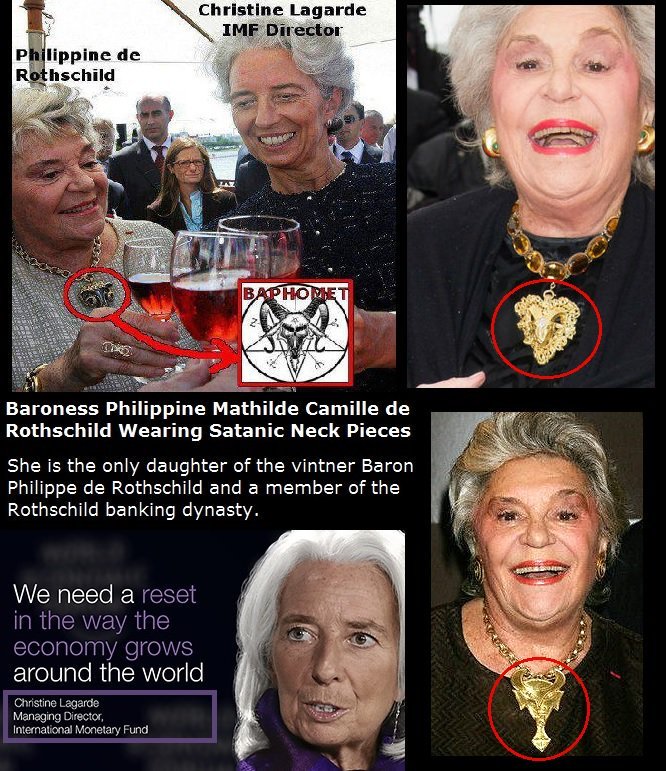 Η κυρία βαρώνη στην φωτογραφία με τον κρεμαστό Μπαφομετ πατάει το κουμπί και νασου και η χοντρή. Ο αναποδος σταυρός, το σύμβολο του ανθρωποκτόνου θεού των κεντρικών τραπεζιτών είναι μπροστά σας. Η βαρώνη Ροτσιλντ σας εξηγεί ότι όποιος έχει το μονοπώλιο του κουμπιού εκδόσεως εικονικού αέρα μας κρατά γερά τα αχαμνά και τα πιέζει.