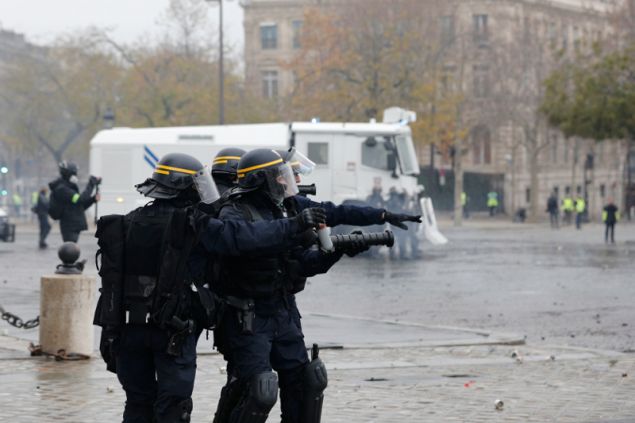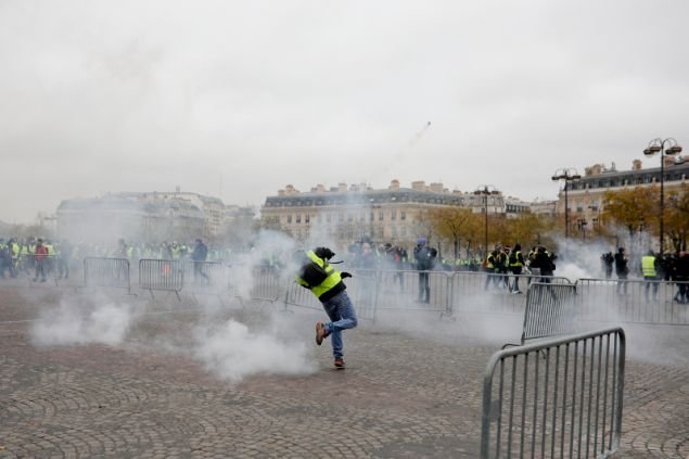 Ειδικές μονάδες της γαλλικής αστυνομίας για την καταστολή ταραχών έκαναν χρήση δακρυγόνων εναντίον διαδηλωτών που φορούν φωσφορίζοντα κίτρινα γιλέκα και προσπαθούσαν να σπάσουν τις γραμμές των αστυνομικών στη λεωφόρο των Ηλυσίων Πεδίων (Σανζ-Ελιζέ) κατά τη σημερινή τρίτη ημέρα εθνικής κινητοποίησής τους.