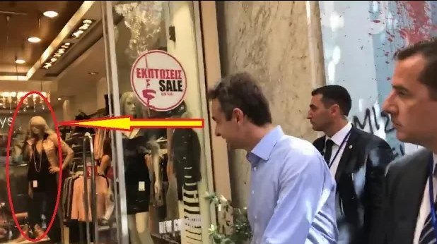 Ο Κυριάκος Μητσοτάκης χαιρετά κούκλα βιτρίνας (χωρίς ερωτηματικά)