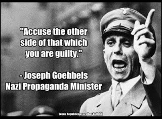 Ο Υπουργός Προπαγάνδας των ναζί, ο Ιωσήφ Γκούμπελς, έλεγε τότε: “Κατηγορείτε την άλλη πλευρά για αυτό που εσείς είστε οι ένοχοι” και γνώριζε πολύ καλά τι έλεγε ο ναζιστής δολοφόνος!!!