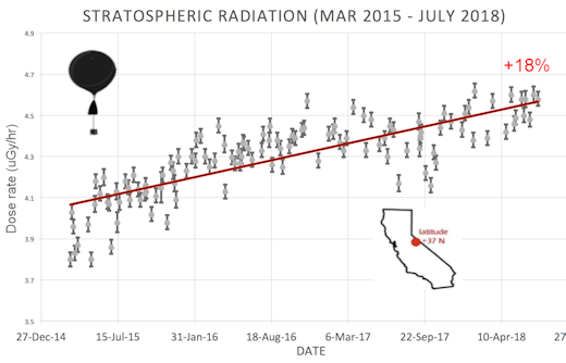 Περίπου μία φορά την εβδομάδα, οι ερευνητές στέλνουν μπαλόνια για να μετρήσουν τον “διαστημικό καιρό” στην στρατόσφαιρα πάνω από την Καλιφόρνια. Αυτά τα μπαλόνια είναι εξοπλισμένα με αισθητήρες ακτινοβολίας που ανιχνεύουν κοσμικές ακτίνες, και στέλνουν «κάτω στη Γη» τις μετρήσεις του διαστημικού καιρού.