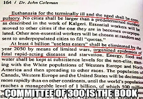 “τουλάχιστον 4 δισεκατομμύρια άχρηστοι θα εξαλειφθούν έως το έτος 2050 μέσω περιορισμένων πολέμων, οργανωμένων επιδημιών θανατηφόρων ταχέων ενεργειών και πείνας…”