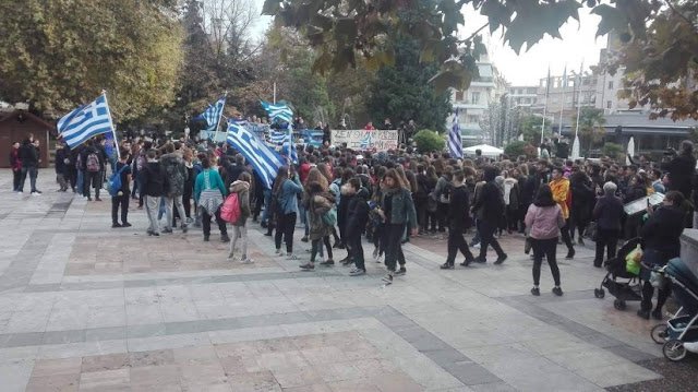 Με πρωτοβουλία των μαθητών του 2ου Γυμνασίου Σερρών πραγματοποιήθηκε πορεία και συγκέντρωση διαμαρτυρίας για την Μακεδονία.