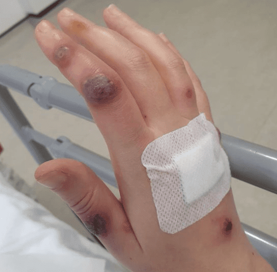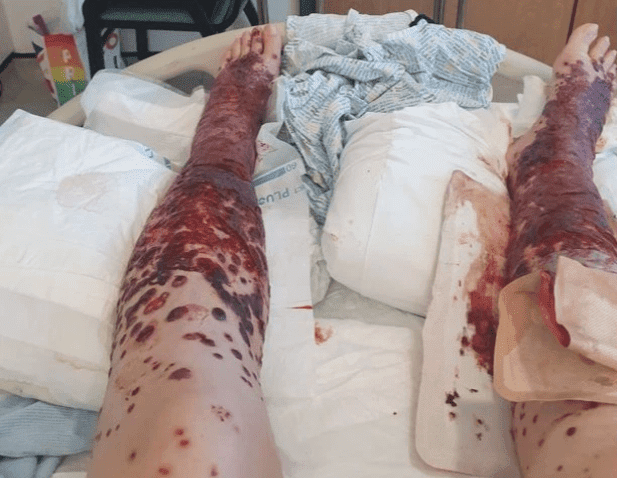 Η Sarah Beuckmann έλαβε την πρώτη δόση του πειραματικού εμβολίου AstraZeneca που έγινε στις 18 Μαρτίου, σύμφωνα με το The Daily Record. Ένιωσε αμέσως συμπτώματα που μοιάζουν με γρίπη, αλλά διαφορετικά ήταν εντάξει – μέχρι επτά ημέρες αργότερα. Μια αίσθηση από μυρμήγκιασμα στα πόδια της γρήγορα μετατράπηκε σε εξάνθημα που μεταμορφώθηκε σε κάτι που βλέπετε μόνο σε ταινίες τρόμου.