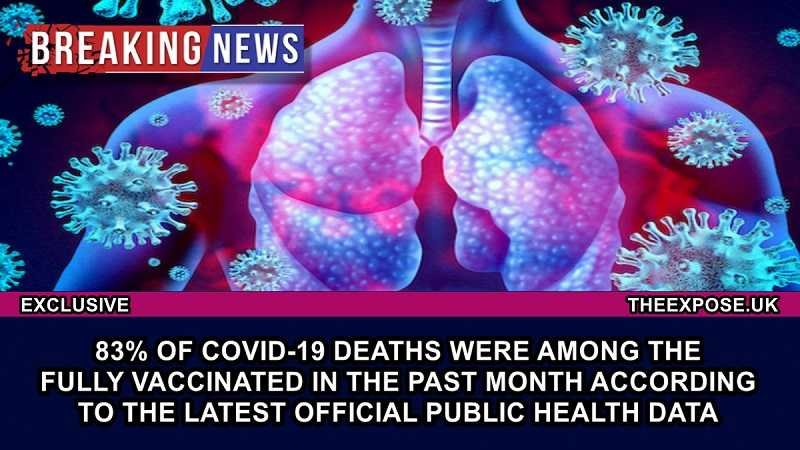Τα τελευταία επίσημα στοιχεία της Δημόσιας Υγείας από την Σκωτία δείχνουν ότι το 83% των θανάτων από Covid-19 τις τελευταίες τέσσερις εβδομάδες αποδίδεται σε πλήρως εμβολιασμένους, ενώ επίσης το 72% των νοσηλειών για Covid-19 και το 56% των φερόμενων κρουσμάτων Covid-19 19 από τον Σεπτέμβριο. Από τις 18 έως τις 15 Οκτωβρίου υπολογίζονται οι πλήρως εμβολιασμένοι, αναφέρει το Theexpose.uk
