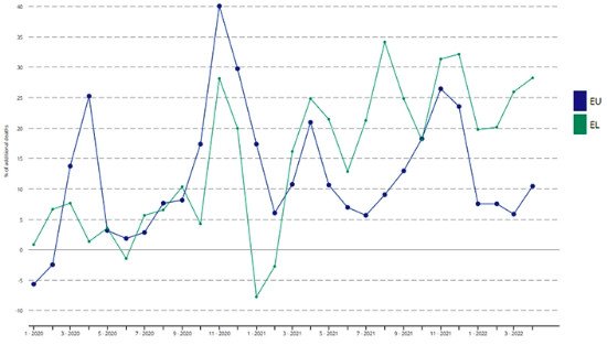 Μηνιαία υπερβάλλουσα θνησιμότητα σε Ελλάδα – Ευρωπαϊκή Ενωση