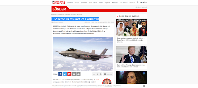 Tην παράδοση τριάντα συνολικά υπερσύγχρονων μαχητικών αεροσκαφών F-35 αναμένει στις 21 Ιουνίου η Τουρκία. Αυτό μεταδίδουν τουρκικά μέσα ενημέρωσης την ίδια ώρα που οι κακές σχέσεις Τουρκίας-ΗΠΑ έθεταν εν αμφιβόλω την υλοποίηση του συγκεκριμένου εξοπλιστικού προγράμματος.