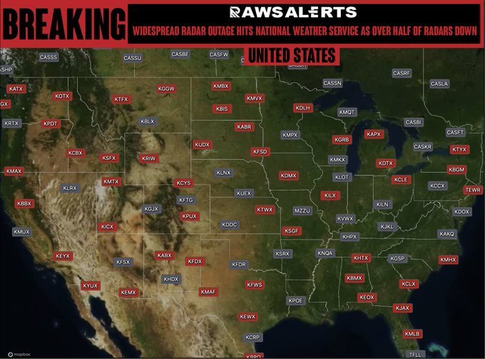 Επί του παρόντος, περίπου τα μισά ή περισσότερα από τα ραντάρ καιρού της Εθνικής Μετεωρολογικής Υπηρεσίας είναι εκτός λειτουργίας, επηρεάζοντας σοβαρά τη διαθεσιμότητα κρίσιμων καιρικών δεδομένων. Αυτή η διακοπή επηρέασε αρκετούς σταθμούς Εθνικής Μετεωρολογικής Υπηρεσίας σε όλη την περιοχή.