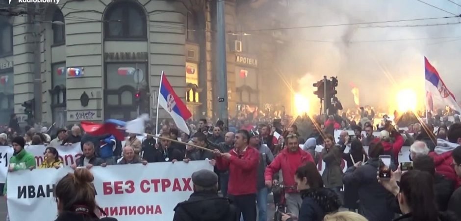 Συνθήματα και ο ρωσικός εθνικός ύμνος στην σερβική πρωτεύουσα