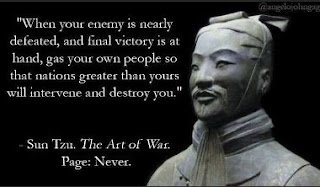 Αν συμβεί ένα χημικό συμβάν, οι ΗΠΑ θα ξέρουν ποιος το έπραξε επειδή παρείχε τις χημικές ουσίες στον τρομοκράτη. Ο συριακός στρατός φυσικά δεν θα χρησιμοποιήσει τέτοια όπλα. Ο Sun Tzu δεν έδωσε ποτέ αυτή τη συμβουλή: