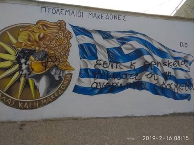 Ένα πραγματικό κόσμημα, ήταν το γκράφιτι με το οποίο σχεδιάστηκε προ ημερών στην είσοδο της Πτολεμαΐδας, με πρωτοβουλία της πατριωτικής ομάδας »Πτολεμαίοι Μακεδόνες». Το γκράφιτι απεικόνιζε την Ελληνική σημαία και την κεφαλή του Μ. Αλεξάνδρου.