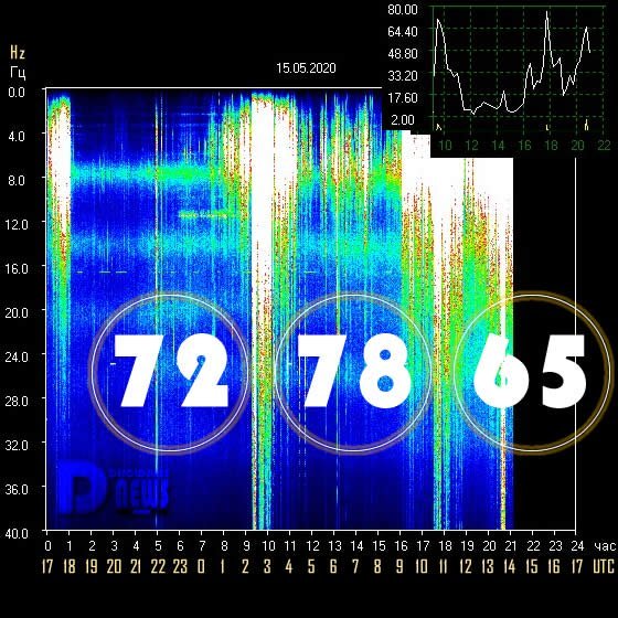 Τα σημερινά επίπεδα της συχνότητας Σούμαν, δηλαδή η αντίχηση της Γαίας ήταν όπως βλέπετε σε υψηλά νούμερα με την κορυφή να φτάνει στα 78Hz!!!