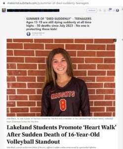 Οι 13-19χρονοι εξακολουθούν να πεθαίνουν ξαφνικά – ΚΑΝΕΙΣ δεν προστατεύει τα παιδιά! ΤΟ ΚΑΛΟΚΑΙΡΙ ΤΟΥ “ΠΕΘΑΝΕ ΞΑΦΝΙΚΑ” Οι 13-19χρονοι εξακολουθούν να πεθαίνουν ξαφνικά – ΚΑΝΕΙΣ δεν προστατεύει αυτά τα παιδιά! Αυτό το άρθρο περιέχει 50 αιφνίδιους θανάτους εφήβων ηλικίας 13 έως 19 ετών, από τον Ιούλιο του 2023. 30 αθλητές (!) 10 ποδοσφαιριστές 5 μπασκετμπολίστες … [Read more…]