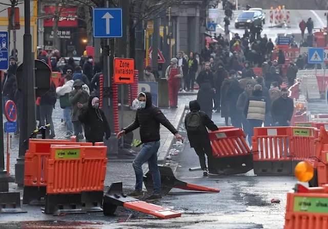 Η βελγική εφημερίδα Het Nieuwsblad γράφει ότι η ατμόσφαιρα χάλασε ξαφνικά όταν μια ομάδα νέων επιτέθηκε σε αστυνομικό επάνω σε μοτοσικλέτα. Που μετά την επίθεση έπρεπε να πάει στο νοσοκομείο τραυματισμένος. Στη συνέχεια, σύμφωνα με την εφημερίδα, η βία στους δρόμους έγινε ανεξέλεκτη. Περίπου 200 διαδηλωτές, κυρίως νέοι χωρίστηκαν σε ομάδες και ξεκίνησαν τις ταραχές.