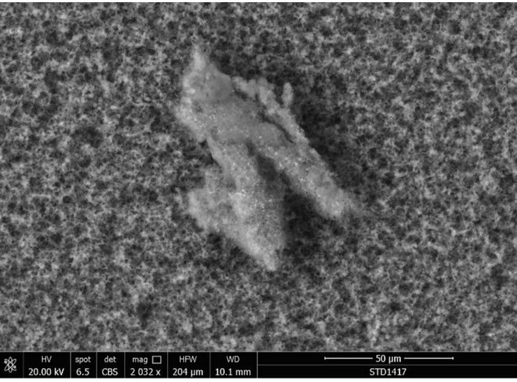 Η εικόνα 4 δείχνει ένα σύμπλεγμα νανοσωματιδίων γραφενίου σε ένα εμβόλιο από την Pfizer. Φαίνεται να έχουν μαζευτεί.