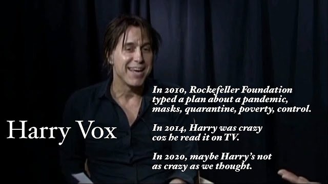 Αναφέρει τα σχέδια του Rockefeller Foundation για τους ιούς που ήθελαν να σκορπίσουν για να δολοφονήσουν 8 εκατομμύρια ανθρώπους μέσα σε 7 μήνες ώστε να περάσουν την ΠΑΓΚΟΣΜΙΑ ΧΟΥΝΤΑ σε παγκόσμιο επίπεδο. Τις μάσκες στο πρόσωπο, τις καραντίνες, την φτώχεια και τον ΟΛΟΚΛΗΡΩΤΙΚΟ μας έλεγχο.