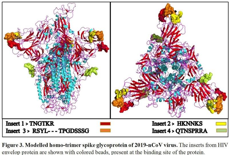 Επιστήμονες στην Ινδία ανακάλυψαν «παρατυπίες» στον κορονοϊό. Καθορίζουν ότι είναι τεχνητά κατασκευασμένος και είναι πολύ επικίνδυνο όπλο γιατί περιέχει σωματίδια του ιού HIV. Είναι μέρη που δεν μοιάζουν με προηγούμενο κορωνοϊό όπως το SARS και ανταποκρίνονται επίσης στα φάρμακα για τον HIV.