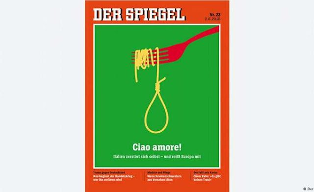 « Με τίτλο «Ciao amore! Η Ιταλία αυτοκαταστρέφεται και παρασύρει και την Ευρώπη», κυκλοφόρησε το γερμανικό περιοδικό Spiegel. Σε πολυσέλιδο αφιέρωμά του αναφέρεται στο μέλλον της Ιταλίας μετά τον σχηματισμό κυβέρνησης και πώς αυτή η εξέλιξη θα επηρεάσει ολόκληρη την Ευρώπη και κυρίως την οικονομία της.