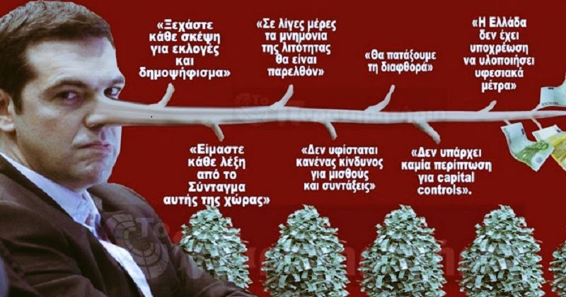 Ψέματα μικρά και μεγάλα που συνεχίζουν να μας αραδιάζουν καθημερινά χωρίς ντροπή και τσίπα με επικεφαλή τον κ. Τσίπρα στο ρόλο του διαχρονικού … Πινόκιο.