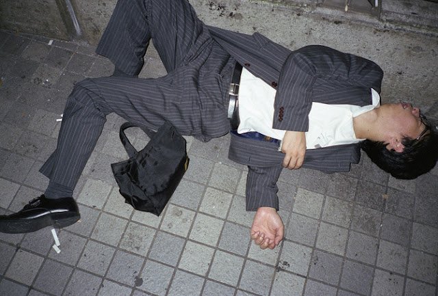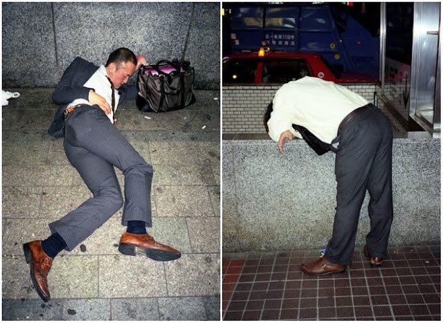 Το νέο φαινόμενο στην Ιαπωνία είναι οι «άστεγοι με τα κοστούμια». Πρόκειται για εργαζόμενους άνδρες οι οποίοι δουλεύουν με εξουθενωτικούς ρυθμούς μέχρι αργά το βράδυ με αποτέλεσμα να τους παίρνει ο ύπνος στη στάση του λεωφορείου και του τραίνου, αφού δεν έχουν πολλές φορές τα χρήματα για να πληρώσουν ξενοδοχείο.