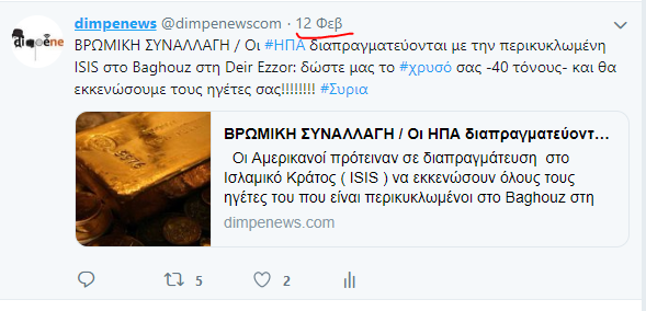 Το dimpenews.com με 2 άρθρα του το ένα ήδη από τις 12/9/19 είχε μιλήσει για τη συναλλαγή ΗΠΑ-DAESH χρυσός έναντι ελευθερίας, εκκένωσης ηγετικών στελεχών…