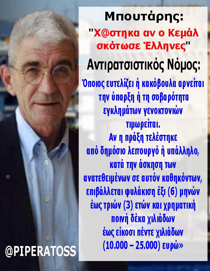 Ειμαστε ολοι μεγαλα παιδια ωριμα… αν ειναι να εχετε οργασμο … μαζεψτε αυτον τον ανθρωπο και απαγγειλετε του της κατηγοριες που του αρμοζουν….αλλιως μερα με την μερα ενισχυεται την ανυπακοη του λαου …πραγμα που μαθηματικα πγαινει μονο προς ενα στοχο … μην δειχνετε λοιπον οτι συναινειτε στα παγκοσμια σχεδια των επικυριαρχων!!