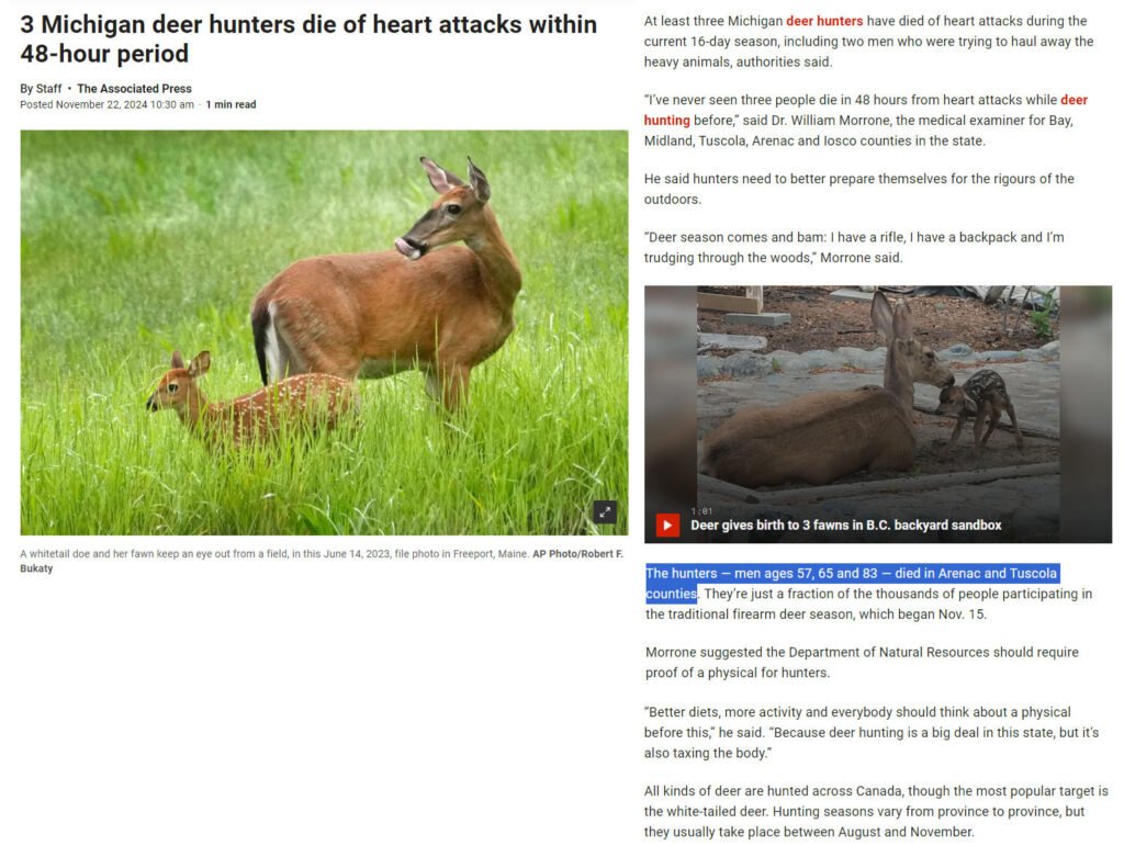 Τρεις κυνηγοί στο Μίτσιγκαν ΞΑΦΝΙΚΑ μέσα σε 48 ώρες δεν υπάρχουν πια γιατί έσκασε η καρδιά τους επάνω στο κυνήγι!