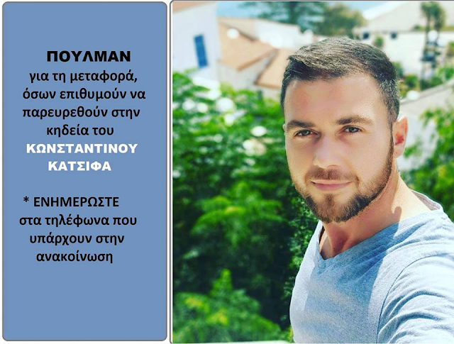 Για το λόγο αυτό ναυλώνει λεωφορεία απο Αθήνα ώστε όσοι επιθυμούν να είναι παρών στη διαδρομή για την τελευταία κατοικία του παιδιού μας..