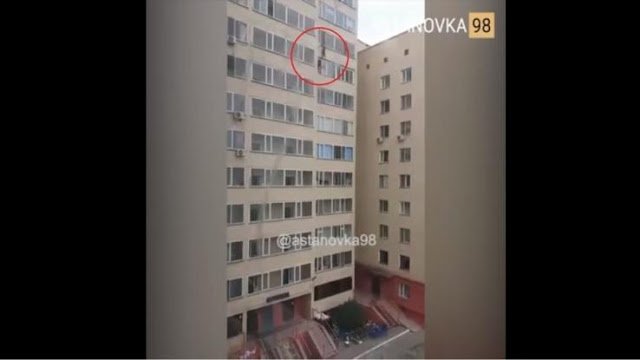 Ένα μικρό αγόρι στο Καζακστάν έπεσε από το παράθυρο του διαμερίσματός του στον 10ο όροφο, αλλά σώθηκε από σίγουρο θάνατο από έναν γείτονα στον κάτω όροφο, ο οποίος βγήκε στο παράθυρό του εγκαίρως για να πιάσει το αγόρι και να το τραβήξει μέσα στο κτίριο.