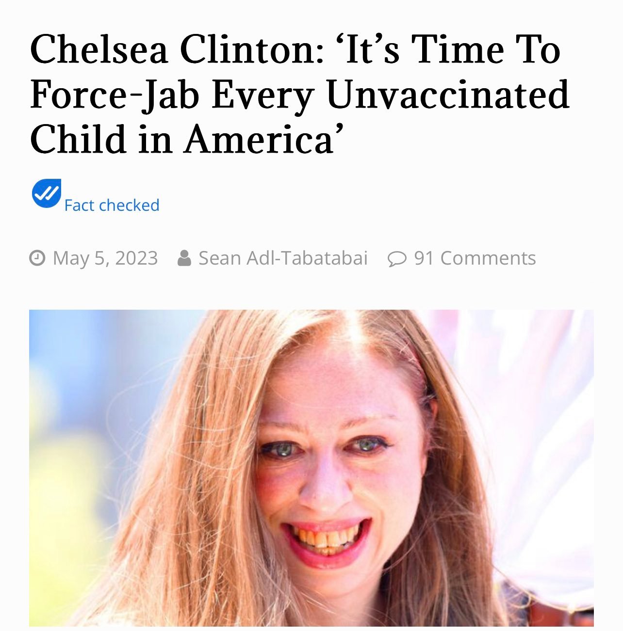 Τσέλσι Κλίντον: Τα μη εμβολιασμένα παιδιά πρέπει να αναγκαστούν να κάνουν το εμβόλιο mRNA με ή χωρίς τη γονική συναίνεση.