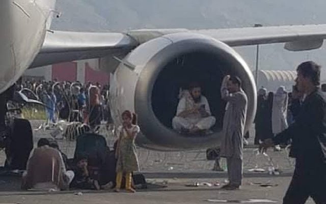 Η απελπισία κάποιων Αφγανών να ξεφύγουν από την καταδυνάστευση των Ταλιμπάν τους οδηγεί σε απονενοημένες πράξεις, όπως είναι το να γαντζωθούν στις ρόδες των αεροσκαφών που απογειώνονται.