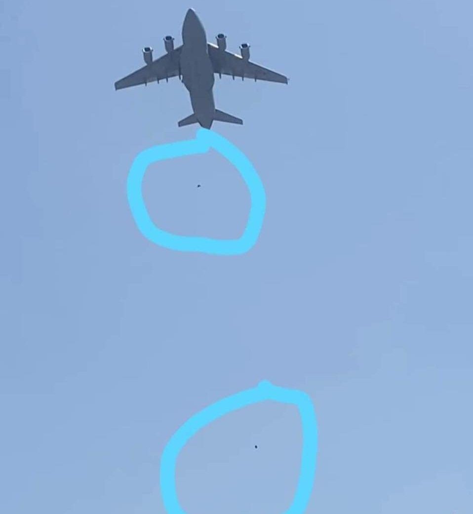 Βίντεο που κάνει τον γύρο του Διαδικτύου εμφανίζει ανθρώπους να πέφτουν από αεροσκάφος που φεύγει από το αεροδρόμιο Χαμίντ Καρζάι της Καμπούλ. Πρόκειται για τα μικρά μαύρα σημάδια που φαίνονται να πέφτουν από το αεροπλάνο την ώρα που εκείνο κερδίζει ύψος.