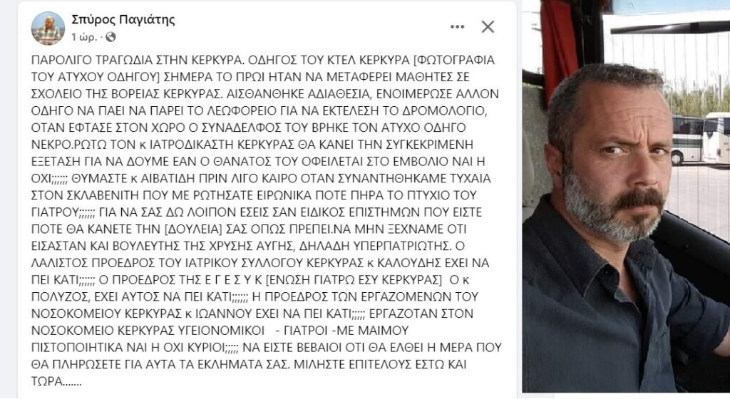 Νεα Ξαφνικίτιδα στη Κέρκυρα.Οδηγός του ΚΤΕΛ ένοιωσε αδιαθεσία και πέθανε μεσα στο Λεωφορείο.