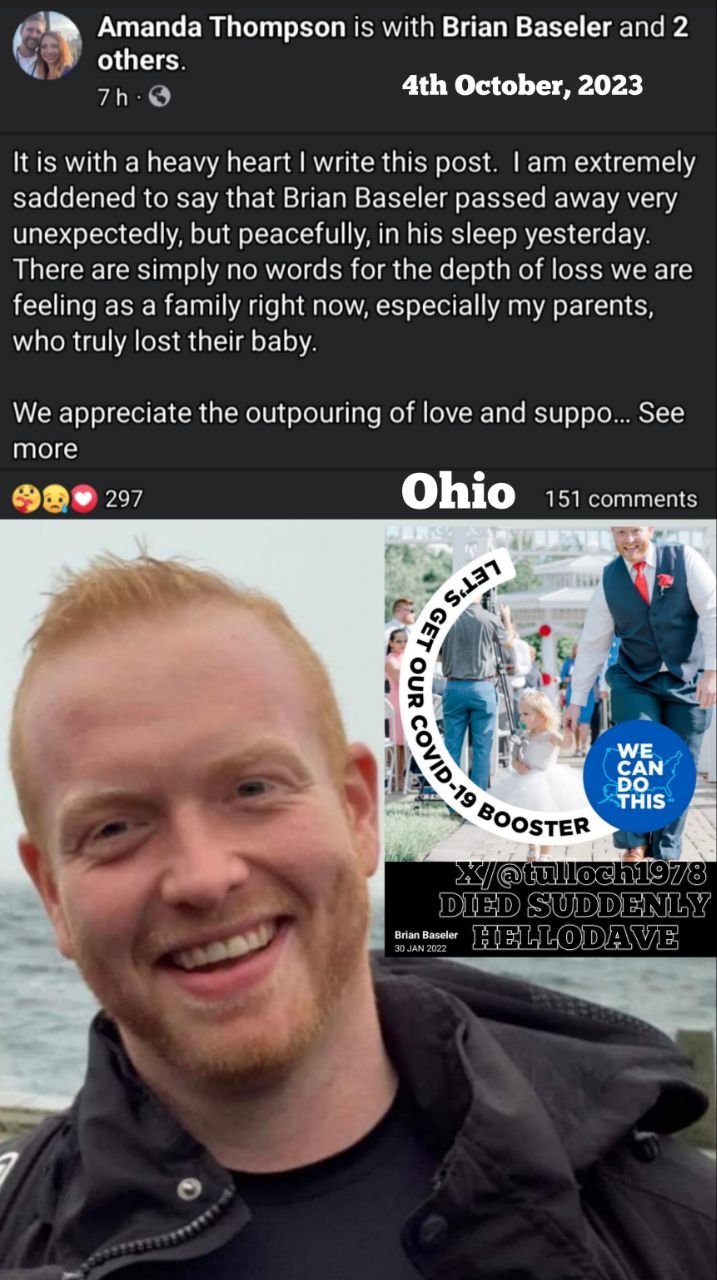 «Με βαριά καρδιά γράφω αυτήν την ανάρτηση. Με μεγάλη λύπη λέω ότι ο Brian Baseler πέθανε πολύ απροσδόκητα, αλλά ειρηνικά, στον ύπνο του χθες».