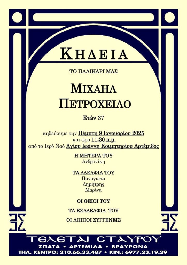 Thank you for reading this post, don't forget to subscribe!Αρτέμιδα: Θρήνος για τον χαμό του Μιχαήλ σε ηλικία μόλις 37 ετών