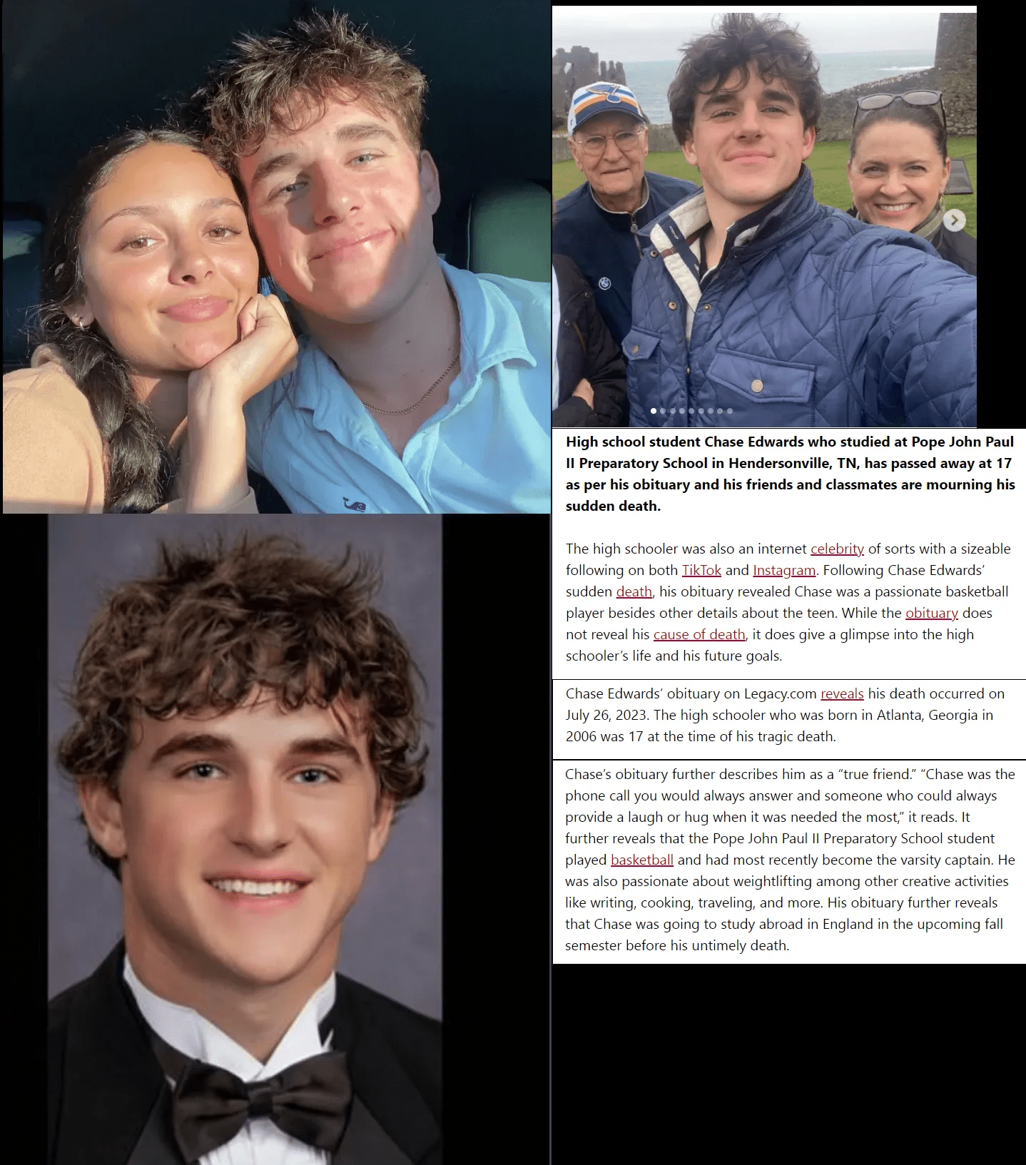 Στις 26 Ιουλίου 2023 στο Hendersonville, ο 17χρονος αρχηγός μπάσκετ του πανεπιστημίου Chase Edwards, πέθανε ξαφνικά.