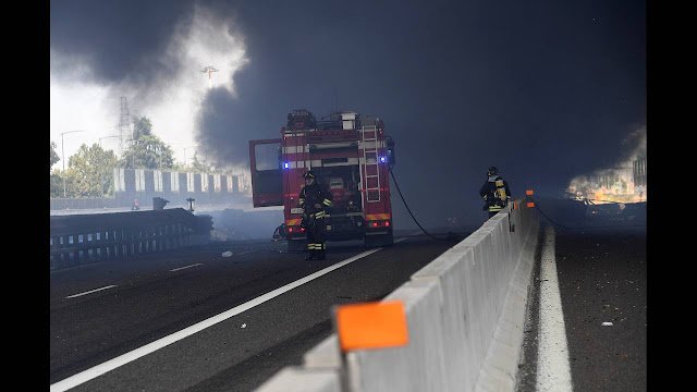 Όπως μεταδίδουν τα ιταλικά μέσα ενημέρωσης, ένα φορτηγό που μετέφερε αυτοκίνητα συγκρούστηκε με βυτιοφόρο, ενώ τα δύο οχήματα κινούνταν σε γέφυρα του αυτοκινητοδρόμου.