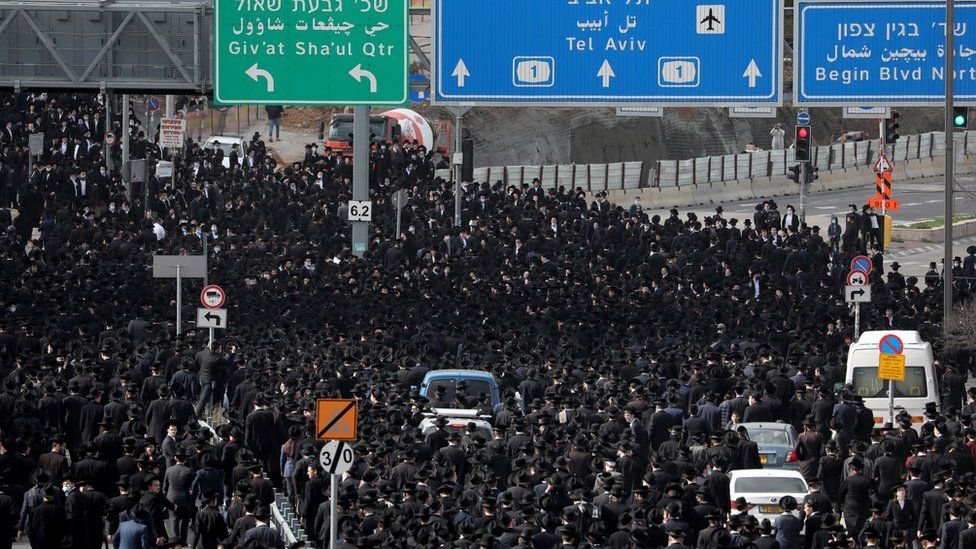 Παρά την καραντίνα, χιλιάδες Ορθόδοξοι Εβραίοι παρακολούθησαν την κηδεία ενός σημαντικού ραβίνου στην Ιερουσαλήμ. Ο υπουργός Άμυνας Benny Gantz καταδίκασε έντονα τα γεγονότα.